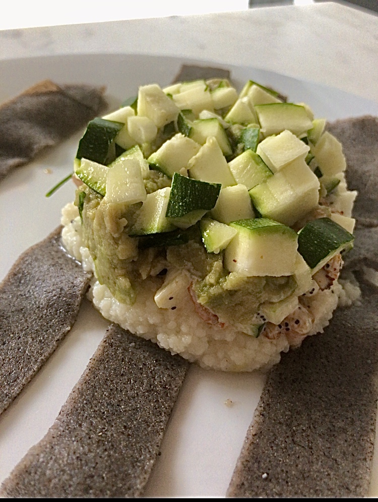 This was a double fun experiment (yet time-consuming, best bet on a rainy day) of making soba noodles out of buckwheat, arrow wood flour, and corn starch. Soba noodles need a lot of strength to keep structure per noodle. There are several variations of improving this but this recipe seems good so far! What to do with soba? How to plate? A fun tower of your fave sashimi combo surely can be the final piece de resistance!