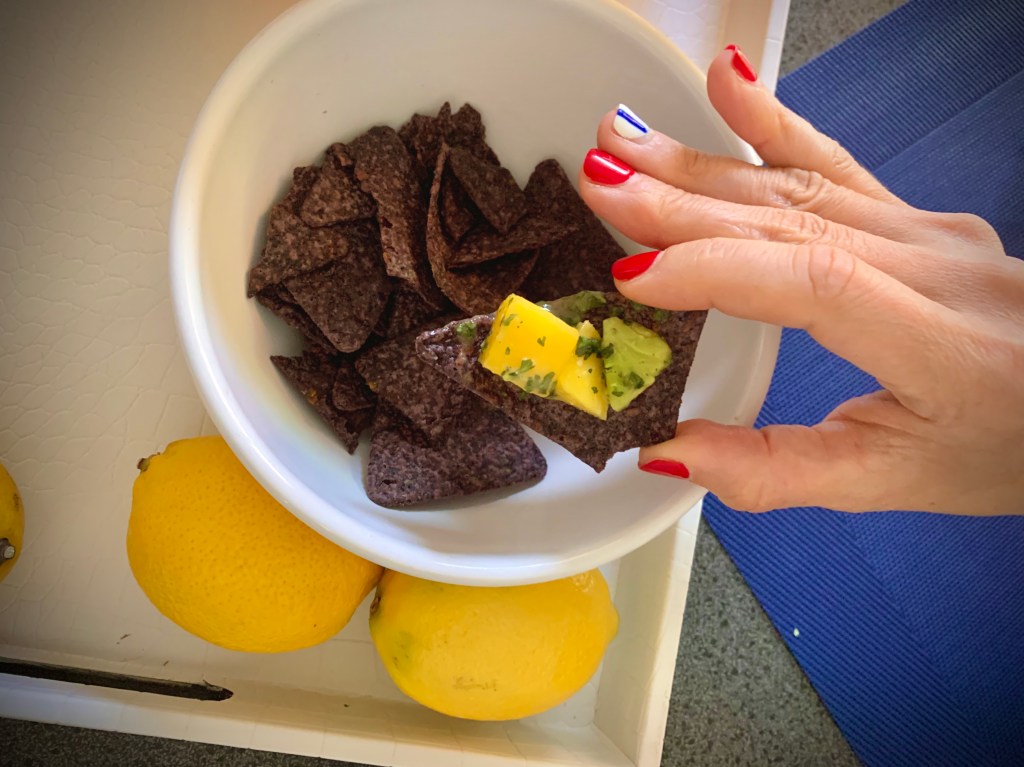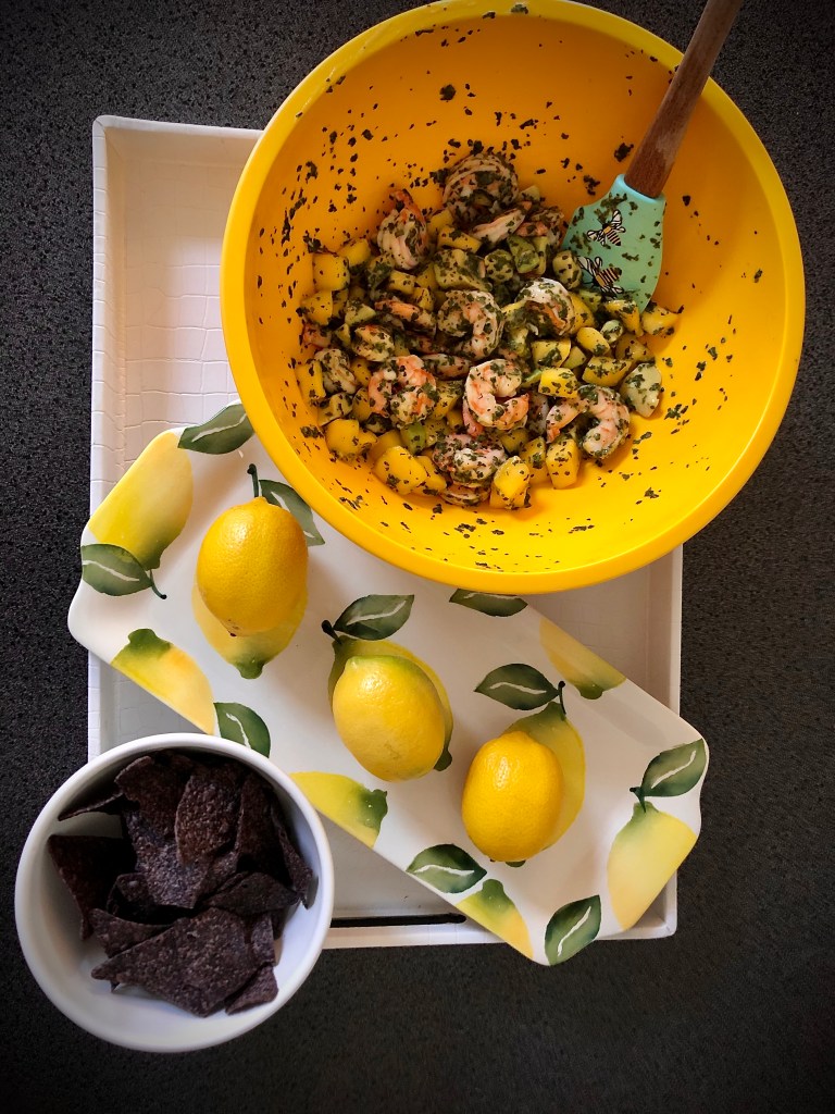 Recipe is as follows……. Any veggie or standard chips or pita crisps will do…. enjoy this “ceviche” based, zesty recipe!