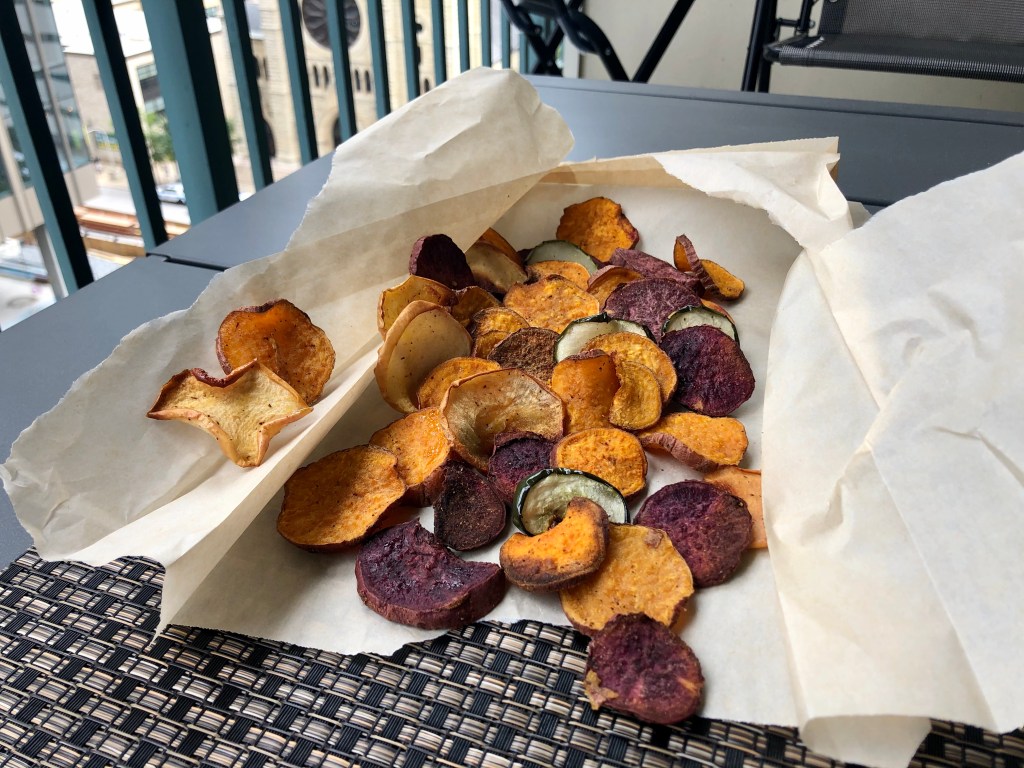 Feel free to garnish with salt or seasoning! They taste and look just like the Terra veggie chips from Whole Foods!